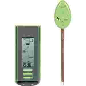 Proszę zwrócić uwagę, że wskazanie opiera się na pomiarze elektrycznej przewodności gleby. Gdy koniec czujnika tkwi np. bezpośrednio w wodzie, wówczas pokazane zostaną najwyżej 2 lub 3 słupki. Koniec czujnika musi dlatego tkwić w glebie dla uzyskania poprawnego pomiaru!