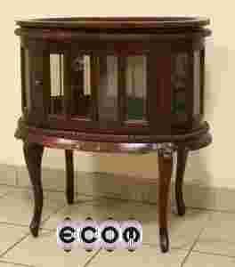 Machoniowa witryna w stylu Wiktoriańskim z tacą w formie nakładanego blatu. Mebel często wykorzystywany jako barek lub witrynka do wystawienia porcelany. Pod blatem, który podobnie jak taca może służyć do przygotowywania drinków, dookoła fazowane szybki. Delikatna snycerka ma nawiązywac do oryginałów z epoki podobnie jak profilowane nogi.