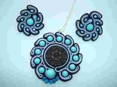 Wisior Kolczyki SUTASZ soutache turkus unikat