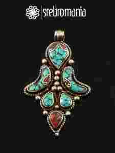 Wisiorek ORIENTALNY Inkrustowany Turkusem PIĘKNY!