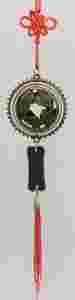 Z wizerunkiem walczącego smoka i pawia, symbolizijącego Yin i Yang ( środek i okalający go pierścień jest ruchomy). W górnej części wisiorka mistyczny węzeł oznaczający nigdy nie kończący się cykl dobrego losu często nazywanym węzłem szczęścia. U dołu trzy monety bogactwa. Amulet pomaga w realizacji planów życiowych i pomyślnym rozwiązywaniu problemów , zapewnia opiekę