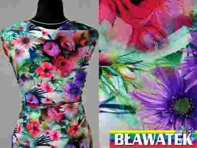 Wiskoza elastyczna, digital, kwiaty, fiolet