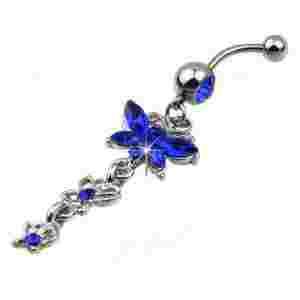 WISZĄCY KOLCZYK DO PĘPKA MOTYLEK CYRKONIE KWIATEK