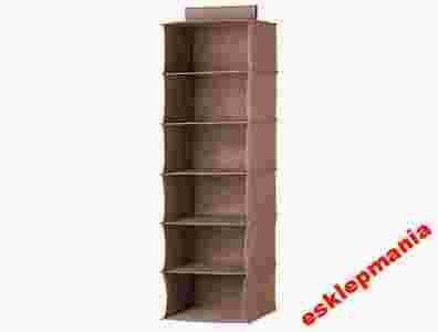 · Produkt fabrycznie nowy, wysokiej jakości. · Zawieszany organizer, pozwoli zachować Ci porządek i doskonale ochroni Twoje ubrania oraz pościel przed kurzem i innymi czynnikami zewnętrznymi. · Wspaniale sprawdzi się podczas bałaganu w szafie. · Zaprojektowany tak, by mieścił się w każdej szafie, posiada wbudowany uchwyt z rzepem - wiesza się go na poprzeczce do wieszaków. · Wykonany jest z wysokiej jakości materiału przepuszczającego powietrze i łatwego w czyszczeniu. · Jest bardzo prosty i szybki w użyciu - zawsze masz łatwy i szybki dostęp do Twoich ubrań i pościeli. · Organizer posiada otwarta jedną ściankę, dzięki której łatwo sprawdzisz co jest w środku na każdej półce. · 6 pojemnych półek pozwala na ułożenie w organizerze mnóstwa ubrań. · Organizer jest tak praktyczny, iż możesz przechowywać w nim inne rzeczy niż buty - np. zabawki, paski, skarpety, drobne akcesoria, bieliznę, koce. · Łatwo się składa i rozkłada, po złozeniu zajmuje niewiele miejsca. · Opakowanie: foliowe Specyfikacja: