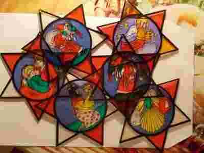 witraż 6 szt średnica 15,5cm gwiazdki