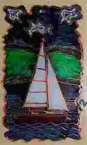 WITRAŻ-POD ŻAGLAMI-OBRAZEK NA SZKLE MALOWANY