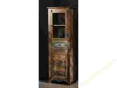 Witryna pojedyncza o sprawdzonych wymiarach, lecz w wyjątkowym stylu to mebel idealny do każdego kolorystycznie pomieszczenia. Zachwyca różnorodnością wykorzystanych materiałów: drewno - mango, akacja, metalowe elementy oraz szyba w drzwiach.