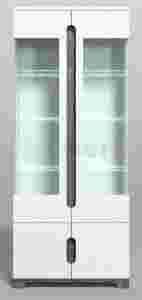 Witryna P9RXLS02- witryna 4-drzwiowa, w tym 2 szklane drzwi. Bardzo mocno przeszklona część ekspozycyjna nadaje meblowi wyjątkowej i niepowtarzalnej formy, a przedmioty i szkło umieszczone na szklanych, podświetlanych półkach prezentują się niezwykle dekoracyjnie.