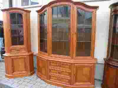 Witryna + witryna rogowa, lite drewno, intarsja !!