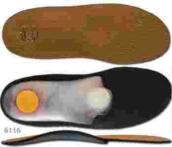 Komfortowa wkładka dla osób z płaskostopiem podłużnym i poprzecznym, podpierająca sklepienie podłużne. Zastosowana pelota metatersalna zienia rozkład nacisków w przedniej części stopy. Profil wkładki stabilizuje piętę.