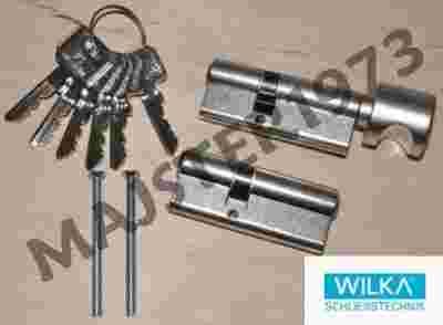 Opis: wkładki atestowane WILKA są wykonane z metalu pokrytego warstwą w kolorze niklu (wkładka z gałką, gałkę ma w kolorze nikiel satyna), w skład kompletu wchodzi w 6 kluczy nacinanych. Komplet wkładek idealnie uzupełni wszelkiego typu drzwi tak zwykłe jak i atestowane z najwyższej półki. Dzięki temu, że komplet składa się z dwóch wkładek (w tym jedna z gałką) umożliwia pewne zamykanie drzwi od wewnątrz bez użycia kluczy dzięki jednej wkładce z gałką a od zewnątrz jednym kluczem można szybko i pewnie zamknąć dwie wkałdki. Dorobienie kluczy jest możliwe tylko na podstawie karty kodowej. Wkładki posiadają Certyfikat Zgodności IMP P41/242/2009 wydany przez Instytut Mechaniki Precyzyjnej Zakład Certyfikacji w Warszawie, który zakwalifikował wkładki do klasy "C" (klasa 6.2).