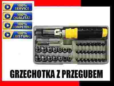 Wkrętak z grzechotką i przegubem,wymienne groty i nasadki kpl.41szt.
