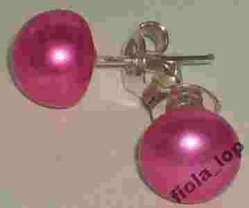 Wkrętki srebro perła naturalna ciemnoróżowa