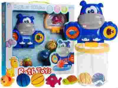 Znajdziemy tu 2 rybki, żółwika, 2 piłeczki do koszykówki, oraz kosz w kształcie hipopotama.
