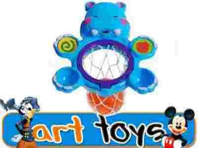 Zabawka oprócz tego, że unosi sie na wodzie od spodu ma zamontowane przyssawki dzięki, którym można hipcia przykleić do ściany płytek i wówczas można grać w koszykówkę.
