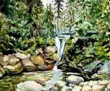 Wodospad - akwarela 36x30cm