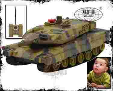 Zdalnie sterowana miniatura czołgu - model Leopard 2 w skali 1:18. Czołg wykonany z tworzywa sztucznego, zasilany jest sześcioma bateriami typu AA – komplet akumulatorów wraz z ładowarką dołączony jest do zestawu. „Kiosk” czołgu jest obrotowy. Na czubku lufy znajduje się lampka, zapalająca się przy oddaniu strzału. Wraz z uruchomieniem, czołg imituje moment odpalania silnika, a podczas użytkowania, zabawka wydaje dźwięk pracującej jednostki diesel’owskiej. Podczas oddawania strzału, czołg wydaje charakterystyczny dla takiej sytuacji odgłos, imitując przy tym efekt odrzutu. Przy jednoczesnym obracaniu „kioskiem” i oddawaniu strzału czołg wypuszcza „serię pocisków”. Zabawka zaprojektowana została tak, aby umożliwić przeprowadzenie bitwy – cztery diody umieszczone na górze czołgu symbolizują ilość żyć, jaka pozostała nam po trafieniu przez inny czołg. Dzięki napędowi gąsienicowemu, zabawka jest w stanie podjechać pod niewielkie przeszkody. Pilot zasilany jest dwiema bateriami typu AA (nie wchodzącymi w skład zestawu) i pozwala kontrolować kierunek jazdy, obracać „kioskiem”, oddawać strzały oraz odpalać i gasić maszynę.