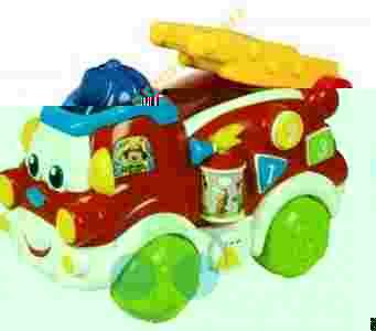 Wóz strażacki zachęca do zabawy swoim oryginalnym wyglądem, kolorowymi obrazkami,różnymi interaktywnymi przyciskami, uśmiechniętą buźką kabiny kierowcy orazsympatycznym głosem.