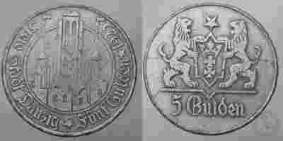 WOLNE MIASTO GDAŃSK - 5 Guldenów 1923 - 1