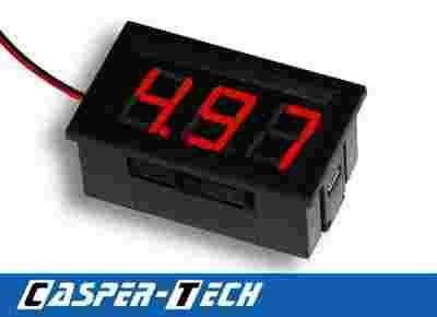 Woltomierz panelowy, duży, 48x29 mm, czerwony 4,5-30V, 2-przewodowy, nowy