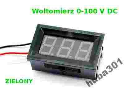 Woltomierz panelowy LED 0-100V DC zielony NOWY