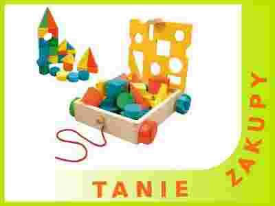 Opis produktu: Drewniany wózek z kolorowymi klockami o kształcie figur geometrycznych. Wózek służy nie tylko do przechowywania klocków, ale także posiada w górym wieczku otwory o kształtach odpowiadającym klockom dziecko dodatkowo uczy się rozpoznawania kształtów. Zabawka przeznaczona: dla dzieci w wieku od 3 lat.