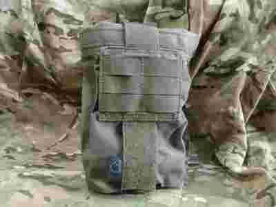 Torba wykonana z jednego kawałka Cordury co zapewnia jej wytrzymałość, a spód z siatki uniemożliwia gromadzenie się w nim wilgoci. Szerokość wlotu rękawa regulowana za pomocą mocnego shockcordu. Całość zwijana i zabezpieczona rzepem do panelu molle. Górna część została usztywniona dzięki czemu wlot nie zapada się i utrzymuje owalny kształt ułatwiający intuicyjne wrzucanie magazynka. Dzięki naszym trokom montażowym, które są w komplecie, możemy stabilnie zamontować panel na taśmach w systemie M.O.L.L.E., do pasa, czy innych taśm o różnych szerokościach.