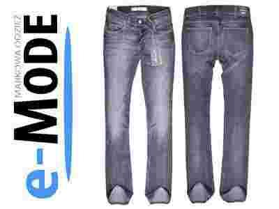 Ten model to biodrówki, nogawki rozszerzane, zapinane na zamek. Szyte mocnymi nićmi. Jeans jest przyjemny w dotyku, świetnie wytarty.