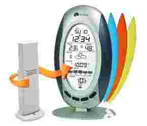 Stacja pogodowa wskazująca aktualny czas (synchronizowany DCF), temperaturę wewnętrzną i zewnętrzną, wilgotność wewnętrzną, ciśnienie atmosferyczne, a także prognozę pogody (za pomocą ikon) w czasie rzeczywistym. Model WS 9152 IT posiada wymienne, kolorowe obudowy. Czas