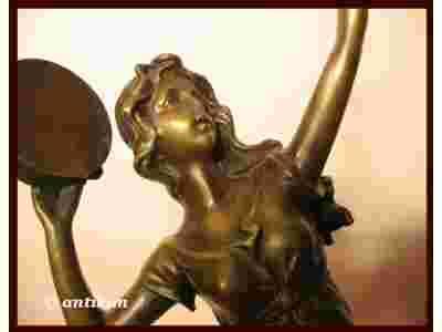 Niezwykle efektowna rzeźba wykonana z brązu. Przedstawia przepiękną niewiastę w tanecznej pozie. Wspaniale ukazano zastygłe w ruchu ciało oraz opinające je zmysłowo fałdy sukni. Artysta szczegółowo oddał wszystkie detale postaci i jej zwiewnego stroju. Warto zwrócić uwagę na kształtne stopy, długie ręce i ślicznie falujące włosy. Rzeźba ta jest pełna dynamizmu i emanuje żywiołowością. Figura osadzona jest na walcowatym cokole z marmuru. Rzeźba to stylowa ozdoba każdego wnętrza. Stan zachowania przedmiotu bardzo dobry, bez uszkodzeń.