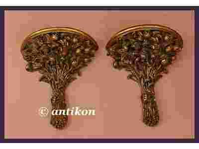 Prześliczna konsola złocona i patynowana. Podstawę półeczki tworzy piękny, niezwykle okazały bukiet róż. Wykwintna konsola przystosowana jest do zawieszenia na ścianie. Ten wielce efektowny przedmiot świetnie się prezentuje i będzie cudowną ozdobą każdego pomieszczenia. Stan bardzo dobry. Przedmiotem aukcji są dwie sztuki.