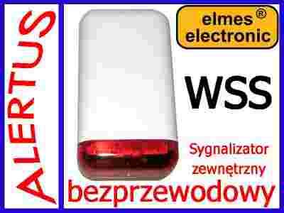Bezprzewodowy sygnalizator Elmes WSS jest akustyczno-optycznym urządzeniem sygnalizacji włamania i napadu przeznaczonym do stosowania na zewnątrz obiektu dozorowanego. Sygnalizator jest urządzeniem mikroprocesorowym i posiada układ nadawczo-odbiorczy do komunikacji bezprzewodowej z centralą alarmową Elmes CB32. Może też współpracować z dowolnym systemem alarmowym przy użyciu dedykowanego modułu sterującego Elmes WSM. Konstrukcja sygnalizatora umożliwia zasilanie go z dost. w komplecie zasilacza sieciowego lub z linii 13,8VDC przewodowego syst. alarm. Zasilanie to umożliwia ładowanie akumulatora, będącego podstawowym źródłem energii sygnalizacji i zapewniającym działanie sygnalizatora także w czasie awarii zasilania sieciowego. Oprócz akustycznych i optycznych sygnałów alarmowych, sygnalizator generuje także sygnały załączenia i wyłączenia dozorowania przydatne przy uzbrajaniu i rozbrajaniu systemu alarmowego pilotem radiowym. Układ zabezpieczenia antysabotażowego sygnalizatora wykrywa zapiankowanie, oderwanie od podłoża oraz zdjęcie pokrywy obudowy. W każdym z tych przypadków sygnalizator natychmiast rozpoczyna alarmowanie i drogą radiową powiadamia centralę. Sygnalizator wysyła również informacje o stanach awaryjnych (np. brak zasilania sieciowego), które są w centrali rejestrowane i sygnalizowane. SPECYFIKACJA
