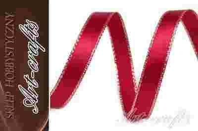 Wstążka satynowa bordowa 10mm z lureksem koloru złotego