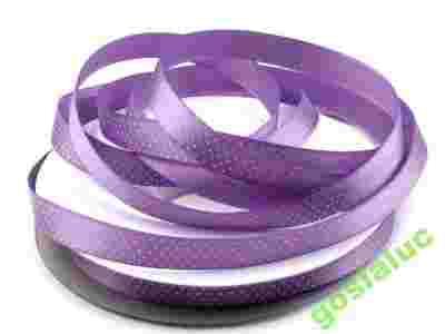 Wstążka satynowa, tasiemka 10mm kropki fiolet 1m