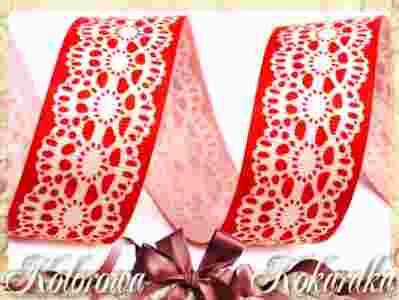 Wstążka tasiemka rypsowa retro ala koronka czerwon