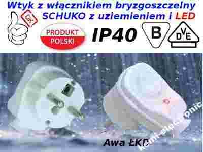 wtyczka kątowa typu schuko na kabel z włącznikiem bryzgoszczelnym o st. ochr. IP40