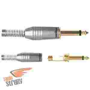 Dobrej jakości wtyk typu Jack Mono 6,3 mm (1/4"). Solidna, niklowana obudowa. Sprężynka zapobiegająca wyrwaniu przewodu z wtyku. Złocone kontakty, aby zapewnić najlepszy styk elektryczny. Maksymalna średnica przewodu: 7,3 mm.