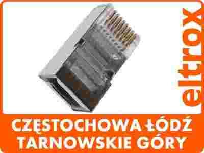 Wtyk RJ-45 8P8C ekranowany 8-stykowy do połączeń między innymi sieciowych. Złącze męskie modularne służy do zakańczania przewodów w instalacjach telefonicznych lub komputerowych. Występuje również odmiana złączy męskich ekranowanych przeznaczonych do pracy w środowiskach o dużym poziomie zakłóceń elektromagnetycznych. Obudowa złącza męskiego wykonana jest z polikarbonu a kontakty ze złoconego fosforobrązu (warstwa złota 6um).