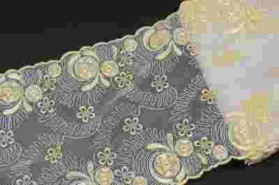 wwwPASMANTERIAeu- żółto beżowy haft na tiulu 9437