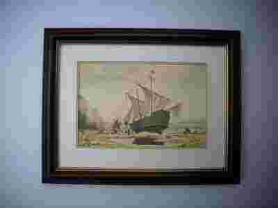 Czysta akwarela - "Wyładunek"sygnowana Stryjewski 2009 malowana na papierze Fabriano na podstawie starej holenderskiej ryciny ma wymiary15x10 cm i jest oprawiona w ozdobną ramkę o wymiarach 23x18 cm. Z tyłu posiada wieszak i jest oklejona wodoodporną taśmą. Zdjęcie nie odzwierciedla w 100% zawartych tam detali i koloru.