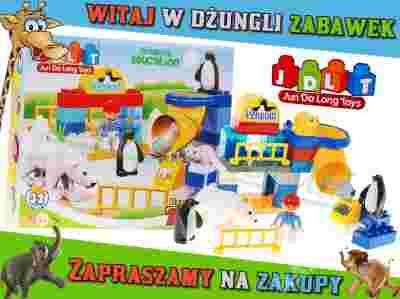 Zawarte w mini zestawie duże klocki do układania dowolnych konstrukcji + mniejsze elementy do rozbudowy oraz elementy z naklejkami ułatwiają tworzenie wybiegu dla pingwinów.