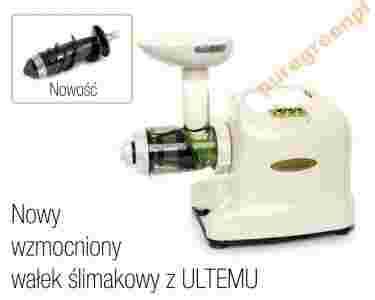 Ta wyciskarka jedno-ślimakowa to jedna z najstarszych tego typu konstrukcji dostępnych na rynku. Charakteryzuje się ona sprawdzoną i prostą budową, która została wielokrotnie przetestowana i doceniona. Na przestrzeni ostatnich lat dokonano kilku usprawnień ślimaka, obudowy oraz sita, co jeszcze bardziej przyczyniło się do poprawy jej wydajności podczas codziennego użytkowania. Główna zaletą tej wyciskarki jest jej uniwersalność, jako że doskonale radzi sobie z szeroką gamą surowców, z trawą pszeniczną włącznie. Jest one ceniona za prostotę oraz łatwość obsługi. Mała ilość części oraz łatwość montażu, skraca czas potrzebny do umycia wyciskarki, co czyni ją jedną z najwygodniejszych w codziennym użyciu. Jednocześnie, proces powolnego wyciskania „na zimno” dostarcza wysokiej jakości soku, bogatego w składniki odżywcze oraz „żywe” enzymy, dla osiągnięcia maksymalnych korzyści zdrowotnych. Maszyna charakteryzuje się solidną, mocną konstrukcją przez co bardzo często wybierana jest jako maszyna robocza w barach oferujących świeże soki.