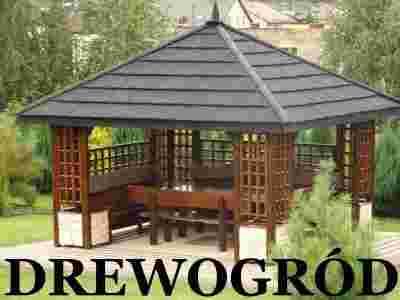Altana o wymiarach 400 x 350 cm impregnowana ciśnieniowo pomalowana jest 3-krotnie farbą Sadolin.