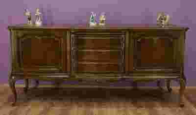 Z ogromną przyjemnością zapraszam do licytacji, której przedmiotem jest wspaniała komoda ludwikowska. Mebel składa się z dwóch szafek i trzech głębokich szuflad oraz jednej płytkiej. Drzwiczki oraz szuflady są bardzo subtelnie zdobione płycinami, w które wkomponowano wytworne rzeźbienia.