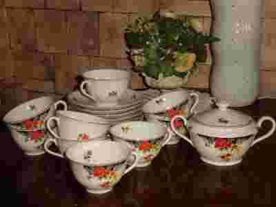 Serdecznie zapraszam do licytacji unikalnych filiżanek dla 9 osób z manufaktury angielskiej. Przepiękna, delikatna ,antyczna porcelana. Przedmioty nadają się do codziennego użytku, a także na rodzinne spotkania. Goście będą nim zachwyceni! W skład zestawu wchodzą: 9 filiżanek z podstawkami i cukierniczka.Stan bardzo dobry, miejscami naczynia maję niewielkie przetarcia złoceń na obrzeżach. Bardzo gorąco polecam i zapraszam do licytacji. Podana cena za cały komplet. Na innych moich aukcjach znajdą Państwo wiele ciekawych przedmiotów.
