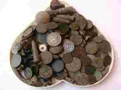 Wykopki, złom kolorowy, monety, guziki itp