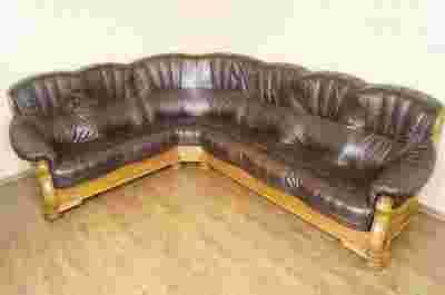 WYPOCZYNEK NAROŻNIK NA STELAŻU DĘBOWYM SKÓRA !!