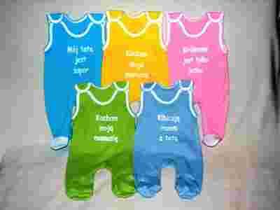 Po zakupie prosimy o informację o numerze wzoru, jaki Państwo wybierają i napisie, jaki ma być z przodu śpioszków. Dostępne napisy: "MÓJ TATA JEST SUPER", "KOCHAM MOJĄ MAMUSIĘ", "KIBICUJĘ RAZEM Z TATĄ", "KRÓLEWNA JEST TYLKO JEDNA". W przypadku, kiedy wybrany będzie tylko nr wzoru, napis będzie wybrany losowo.