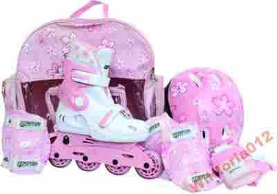 TEMPISH BABY SKATE - Rolki przeznaczone do nauki jazdy dla najmłodszych użytkowników, którzy zaczynają swoją przygodę z rolkami. Dołączony do zestawu kask i 3 pary ochraniaczy (na nadgarstki, na łokcie i na kolana) pozwolą na bezpieczną zabawę. Do zestawu dołączony jest również komplet śrub, który pozwala na zamontowanie z tyłu rolki dwóch kółek dzięki czemu otrzymujemy rolki podobne do wrotek. Całość zapakowana jest w praktyczny i estetyczny plecak, dzięki czemu świetnie nadaje się na prezent.