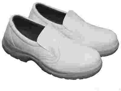 - podeszwa wykonana z podwójnego poliuretanu, olejoodporna i kwasoodporna, w kolorze białym, absorpcja uderzeń pod piętą